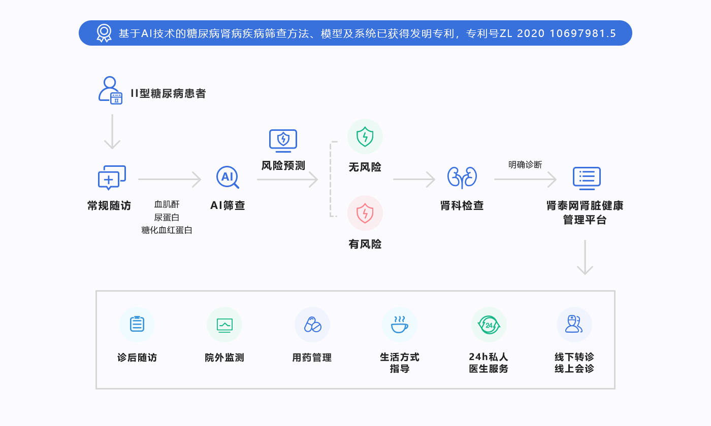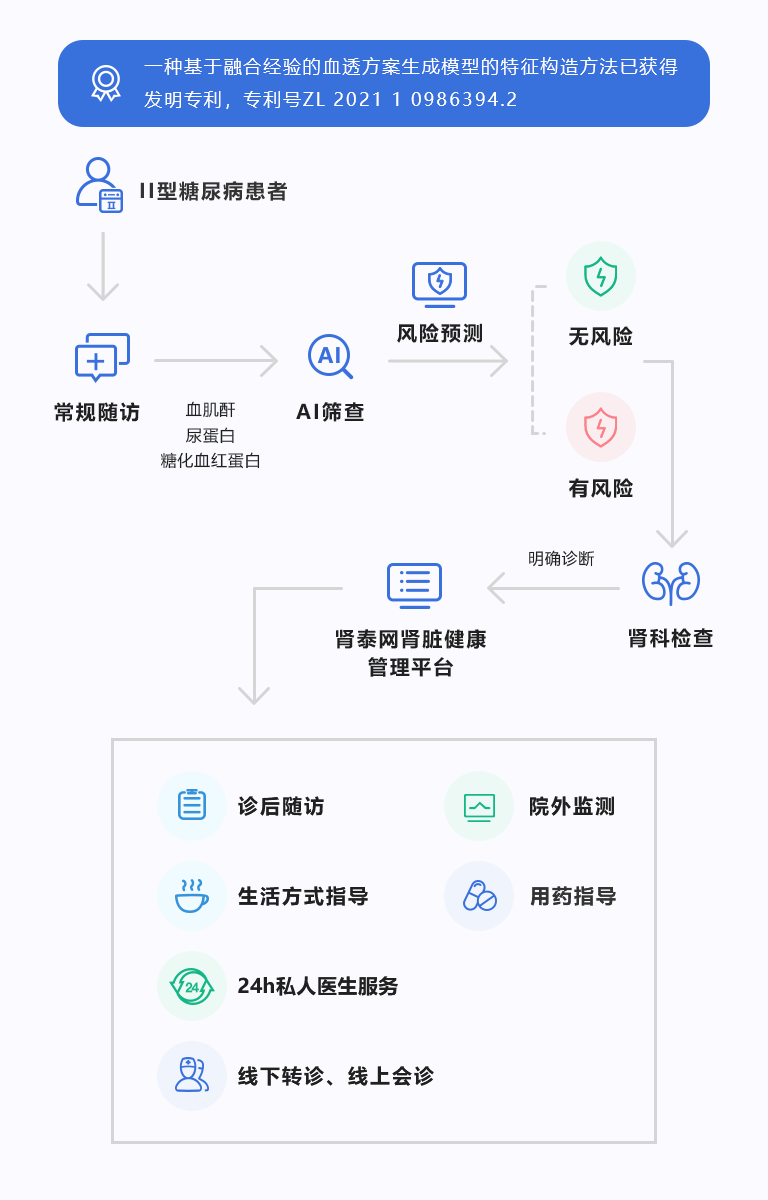 针对DKD不同风险人群,进行个性化智能随访并结合诊疗方案的方式,实现DKD患者院内院外一体化健康管理。